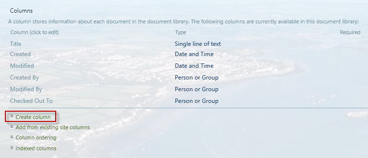 Go to the Library Tab > Library Settings. Scroll down below the columns and click on “Create Column”. I’ve added columns for Job Title, Line Manager, Summary, Duties & Responsibilities and Department.