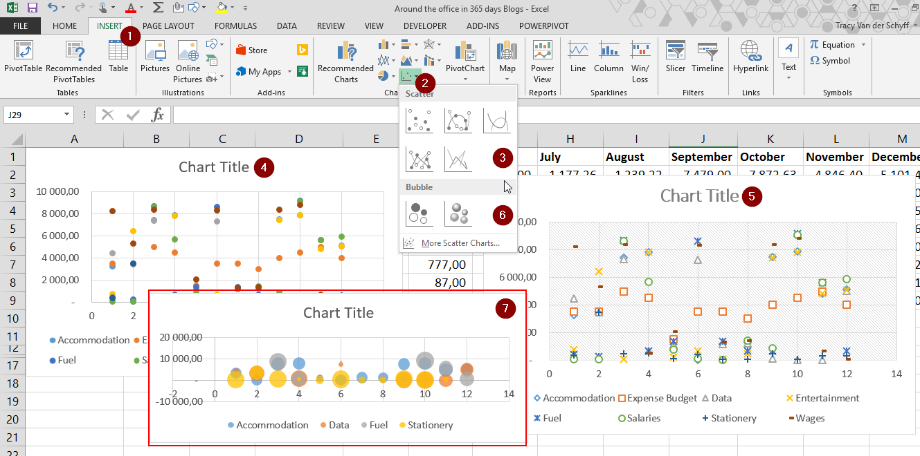 #Office365Challenge – Creating Scatter and Bubble Charts in Excel are super fun. Yes, yes, I think they’re cute. I’m so used to column and pie charts that these type of charts are quite refreshing, and no, I am not trying to diminish the power these charts can have.