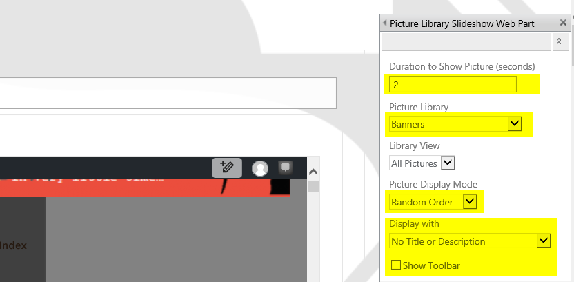 - Add the Picture Library Slideshow Web part to your page