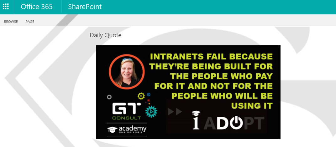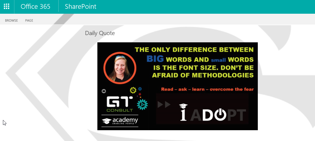 In this example I’ve loaded some of the Academy’s daily quotes. Ensure that your images are all the same size or the web part will keep on resizing during the slideshow.