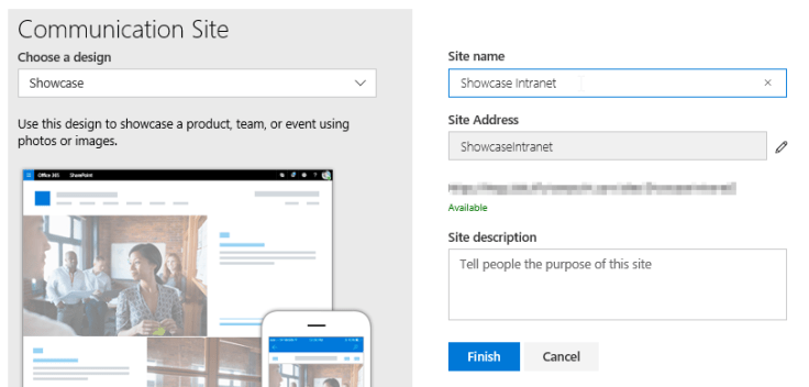 The Communication Sites have 3 designs available. Topic, Showcase and Blank: