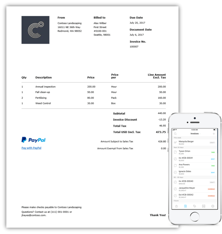 Microsoft Invoicing is an easy to use online and mobile app for creating and sending professional looking PDF invoices to customers. With Microsoft Invoicing, you can: