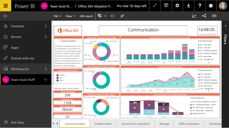 Note: The Office 365 Adoption Content Pack in PowerBI is pretty awesome. There’s various reports pre-setup for you to use: Enable the Power BI Adoption content pack for Office 365