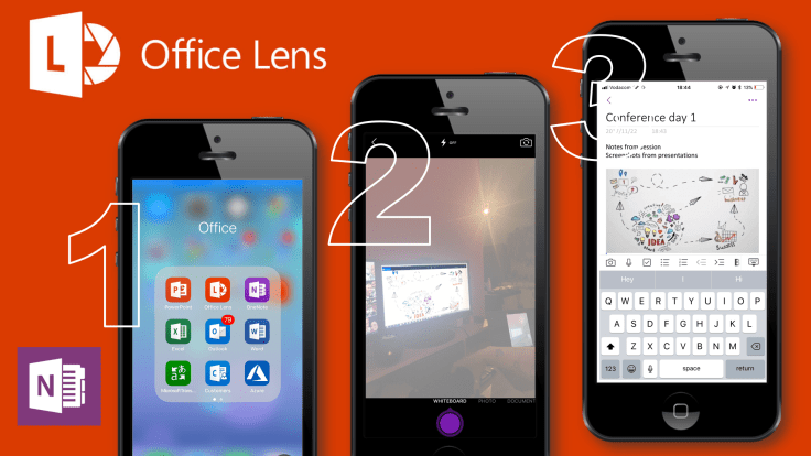 I’ve used the Office Lens App on my iPhone and Android phone to take photos of presentations. It can also be used to ‘scan’ documents etc. Office Lens is now also built into your iPhone and iPad OneNote for inserting images with your camera. When taking a photo, Office Lens will ‘turn’ the image straight and make it square.