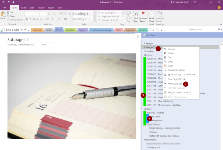 #Microsoft365 – In a recent post I showed you how to group you sections in OneNote. Today we’ll take a look at creating subpages which will further assist with creating some space and order in your OneNote Notebooks.