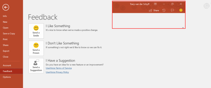 Don’t forget you have the ability to give feedback straight from your Office app: