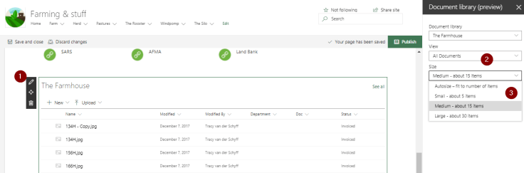 Before adding the web part to your page, make sure that you’ve written views that work well on pages. For example, if your library has 5 metadata columns, I would write a ‘narrower’ view which doesn’t show all the columns and groups data to make the view ‘shorter’. If your page is in Edit mode already and you open a new tab to create the view, you will have to Save and Publish your page before you can pick up that view. Not sure how to create views: SharePoint: Easily create views in new Modern Libraries
