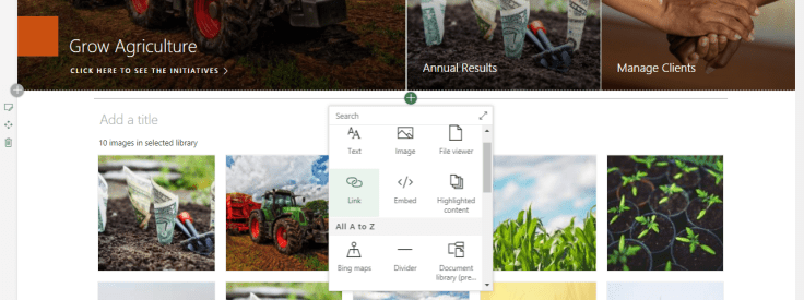 Use the Link web part to add a link to an internal or external page, video, image, or document. Use the Link web part on a page.