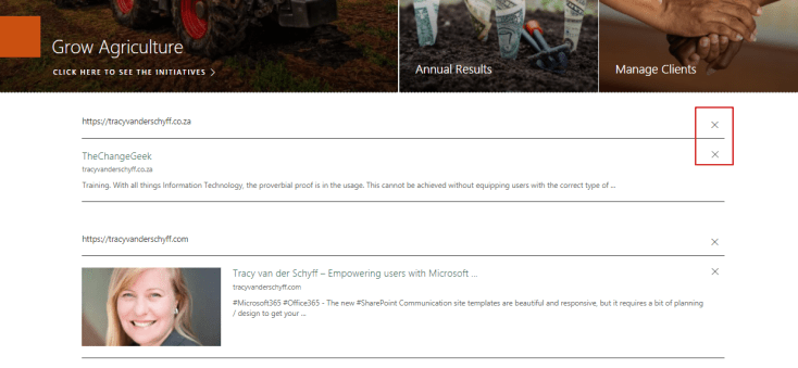 This is how the web part displays: If the site does not have an preview image it will only display text. Keep in mind that you can link to external and internal sites, documents, videos and images:
