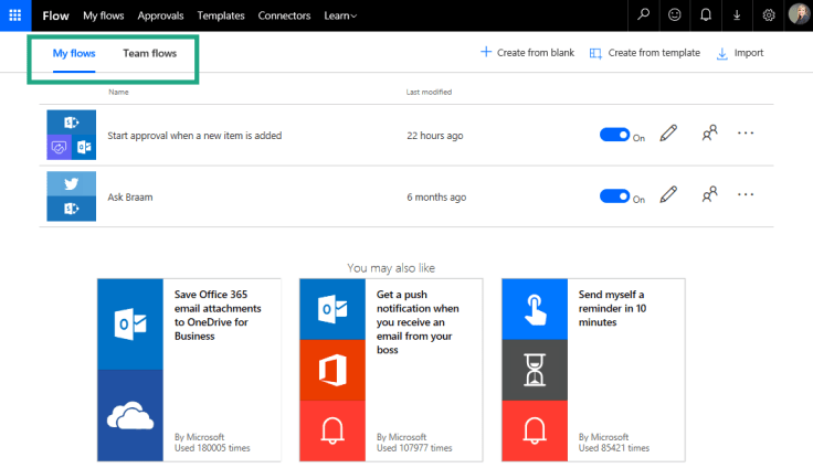 Microsoft Flow is a service that helps you create automated workflows between your favorite apps and services to synchronize files, get notifications, collect data, and more. Read article...
