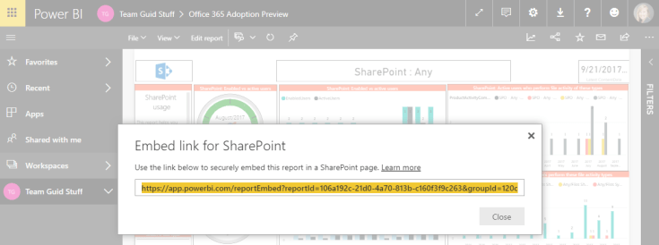 Note: Embedding a report in SharePoint Online does not automatically give users permission to view the report. The permissions to view the report are set within the Power BI service.