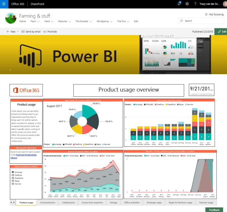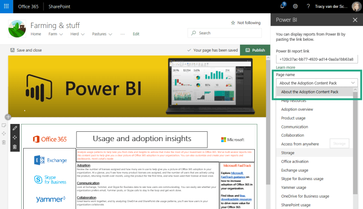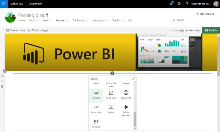 The Power BI report web part allows you to easily embed an interactive Power BI report on your page. The embedded reports are fully secure so you can easily create secure internal portals. Use the Power BI web part on a page.