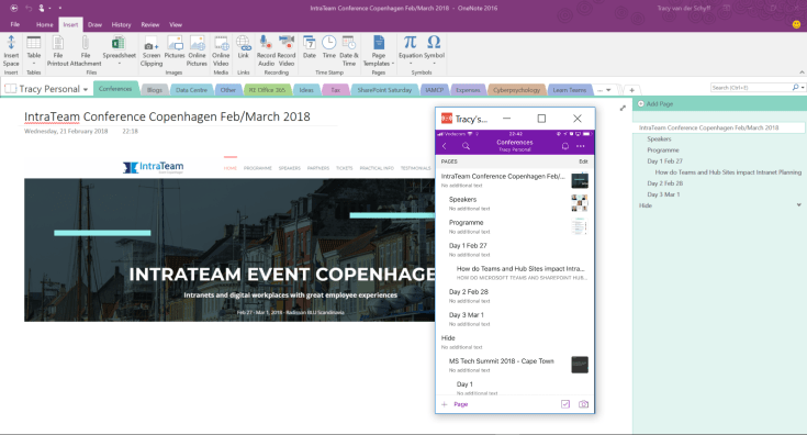 #Microsoft365 #Office365 #OfficeLens #OneNote #OneDrive As preparation for the upcoming #IntraTeam18 conference in Copenhagen I’ve started setting up my OneNote sections and pages I’d like to use for the conference. I use my mobile to take notes, pictures and reference files. Let me show you how easy this is and hopefully you’ll consider these as the go-to apps for your meeting minutes and brainstorming sessions (wish I had this when I was still in Compliance doing Site Audits).