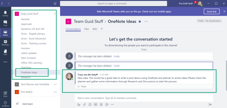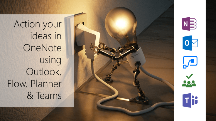 #Microsoft365 #Office365 Thanks @DanielGlenn and @DarrellaaS for the inspiration at #MVPSummit to write this post. If you’re a big lover of #OneNote like me, you’ll be making lots of notes during conferences and getting super inspired by what you’re seeing and hearing. The challenge is that #OneNote, just like writing notes in a physical notebook, needs revisiting to become actionable ideas. If I don’t go back to my notes, I’ll forget that I wanted to write that blog, or read a book etc. Let’s take a look at how we can use #Outlook, #MicrosoftFlow, #MicrosoftPlanner & #MicrosoftTeams to help us be more efficient.