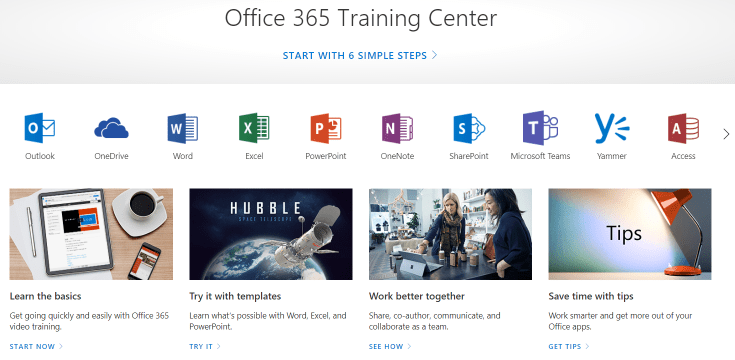 Will open the Office 365 Training Center page on the web. An incredible resource that includes: