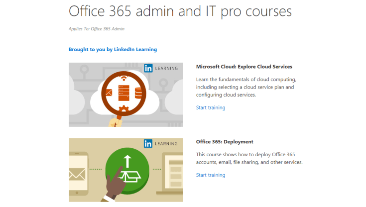 Will open the Office 365 admin and IT pro courses page on the web which is brought to you by LinkedIn Learning. Some of the courses you’ll see here are: