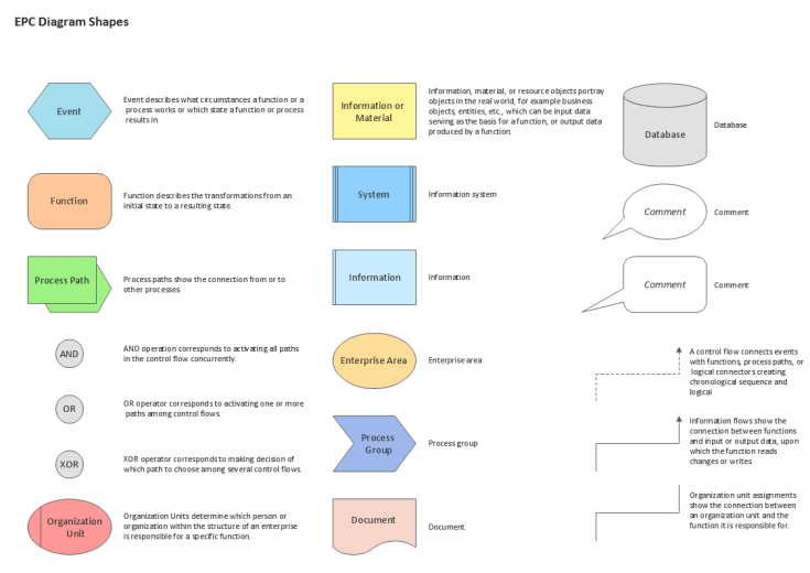 EPC (Event-driven Process Chain) diagrams illustrate business process work flows and are an important component of the SAP R/3 modeling concepts for business engineering. EPC diagrams use graphical symbols to show the control-flow structure of a business process as a chain of events and functions. Using the EPC Diagram template in Microsoft Office Visio, you can quickly and easily create a high-level, visual model of your business process.