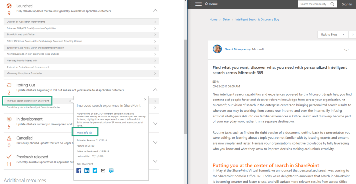 The “Find what you want, discover what you need with personalized intelligent search across Microsoft 365” article shares a lot of insights around the functionality that will be launched soon. Let’s summarize what we can expect: