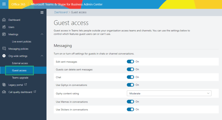 Under Org-wide Settings > Guest Access, you’ll find the settings for your Guests in Teams: