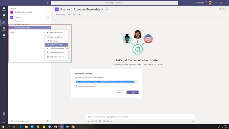 Send an email to a channel in Teams: