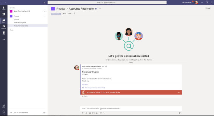 - I supply the address to vendors for invoices and statements. They don’t need to be part of the team, but will be able to email the channel.