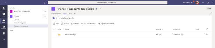 - On projects I use this for any reports etc. that project members need to send in. Especially if they’re from other companies and have to constantly change tenants on the team, then it’s much easier to just email the report to that team channel.