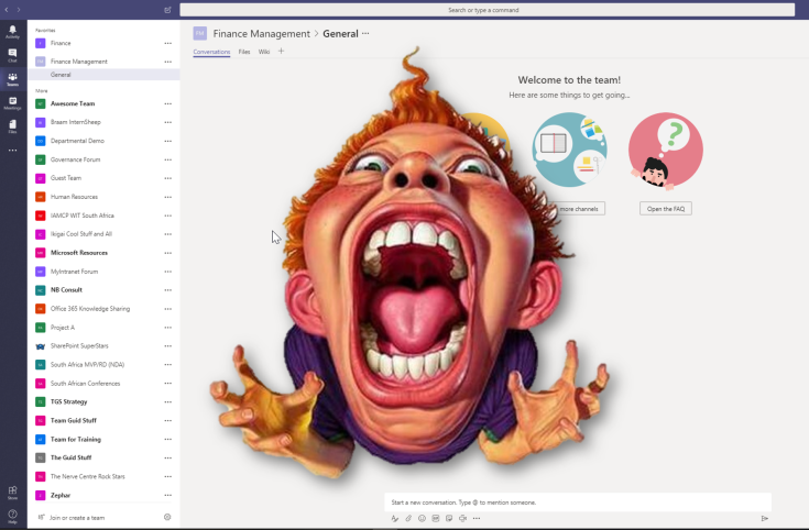 Here’s a typical example of a Team for a Finance department. Now depending on the size of your organization, each of those channels could be a department on its own, and then I suppose a Team for each would make sense. But imagine a smaller company where each of those “sub processes” have 2 or 3 people in it, and on a lot of them, you have people working in multiple areas, across process. So someone has gotten trigger happy with creating Teams and you’ve ended up with a Team for each. Which means the management has a Team for each as well. That’s just painful. Why would you do that? The answer is always security. In each of those areas there are sensitive documents shared that not everyone should see. (Yes I know, private channels is a possibility in the future, but let’s deal with that later, because of course I have an opinion on that).