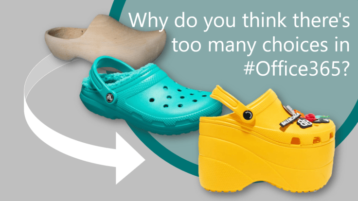 I’ve never quite understood the complaints about “Too many choices in #Office365”, and the “When to use what” situation. Of course I’m guilty of not taking the time to get to know something before I start complaining about being confused, but that’s just human right?