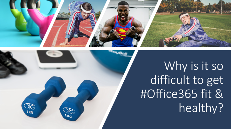 Imagine I was a personal trainer and nutritionist. Bwahahahahaha!!!…. Ok, you can all stop laughing now, but just imagine… So, companies approach me to help them decide which equipment to use in the #Office365 gym and help their users get in shape. It’s not about telling people what to do to be healthier, but also help them understand the benefits it has in store.