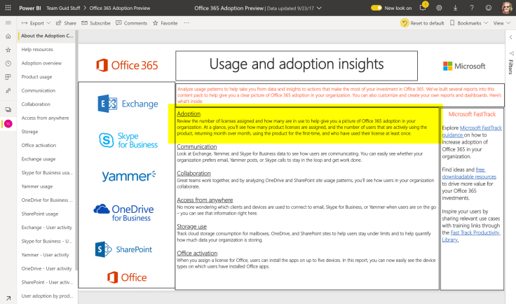 “The Office 365 adoption content pack in Power BI enables admin to visualize and analyze their organization’s Office 365 usage data, create custom reports, and share the insights – pivoting by attributes available in Azure Active Directory such as location and department.” Read more…