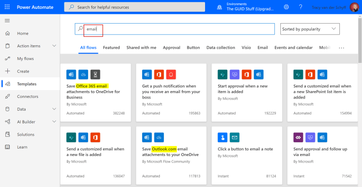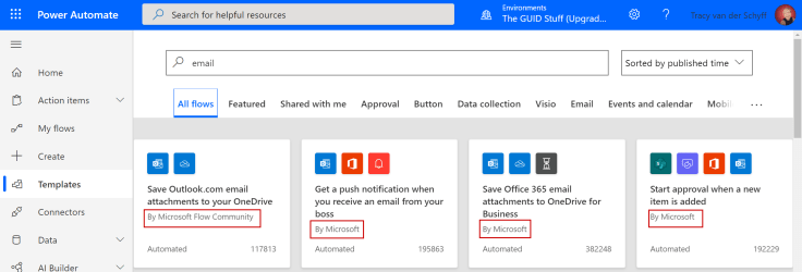 In Power Automate there are many preconfigured templates to use. MANY! How nice of Microsoft to help us out like that 🙂
