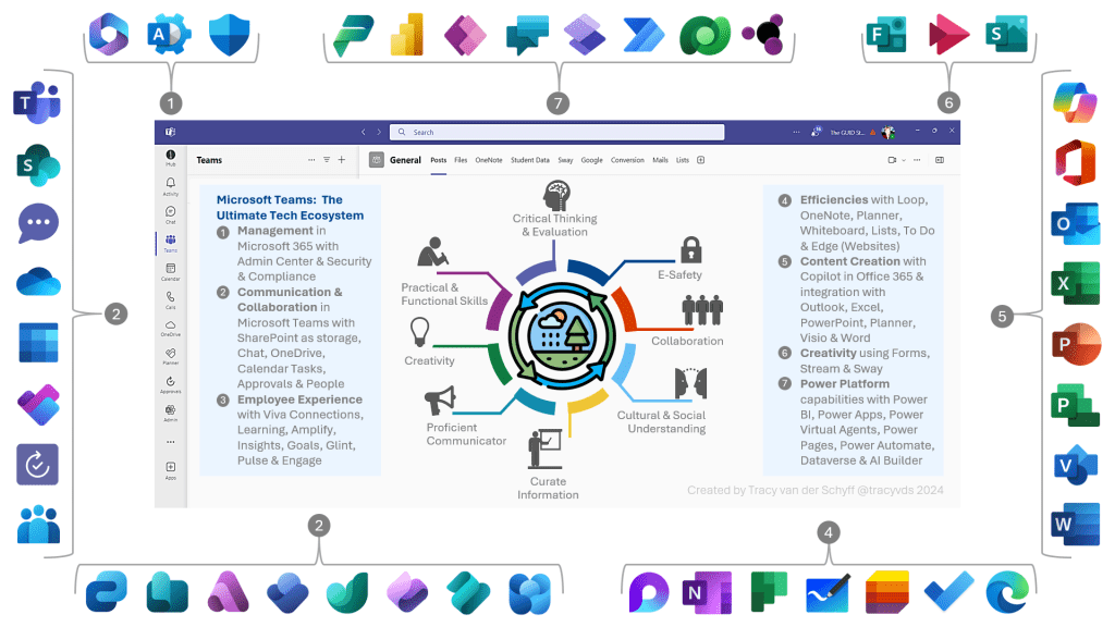 In my eyes Microsoft Teams is the stargate portal that brings everything together and gives you access to all the apps you need to work with (or most of them at least). Not only does it bring everything together (catalyst), but it also enables and supports the development of the 8 pillars of digital literacy: critical thinking and evaluation, e-safety, collaboration, cultural & social understanding, curation of information, proficient communication, creativity and practical & functional skills. Microsoft | Office 365 Supports Digital Literacy Skills.