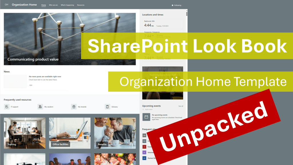 Some recent changes to the #SharePoint Look Book has caused an upset in the #Microsoft #Community. The direct resources to the web parts used on the pages are no longer available, so I decided to do a run-through of each template to unpack the template and web parts used. Of course these templates can be easily deployed in your tenant, but not everyone has SharePoint or Global Admin to do so, AND, the ability we had to be inspired from and learn from the Look Book is no longer the same. In this blog you’ll find the screenshots, references as well as the video to walk you through it all.