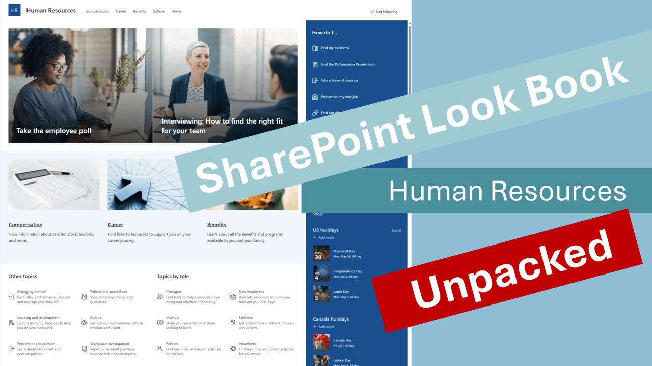 As part of my "SharePoint Look Book" series, I'm unpacking each of the templates in a video and will also supply the resources to the web parts used, in order. Today I'll be covering the "Human Resources" template. Below you'll... Continue Reading →