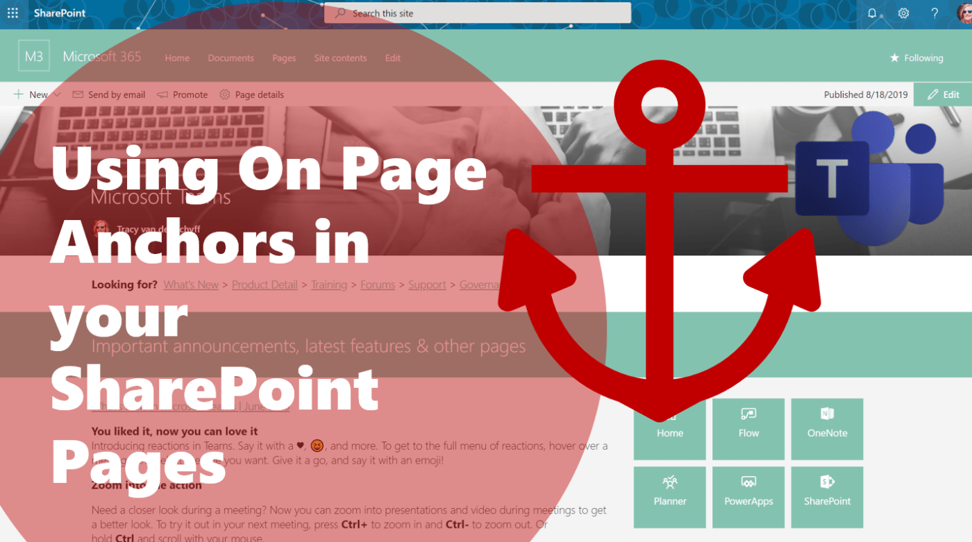 On Page Anchors for #SharePoint Pages has arrived! This is a welcome new addition to new Modern SharePoint features for sure. Anchors are used to navigate the user to a specific place on the current page (headers). This really helps... Continue Reading →