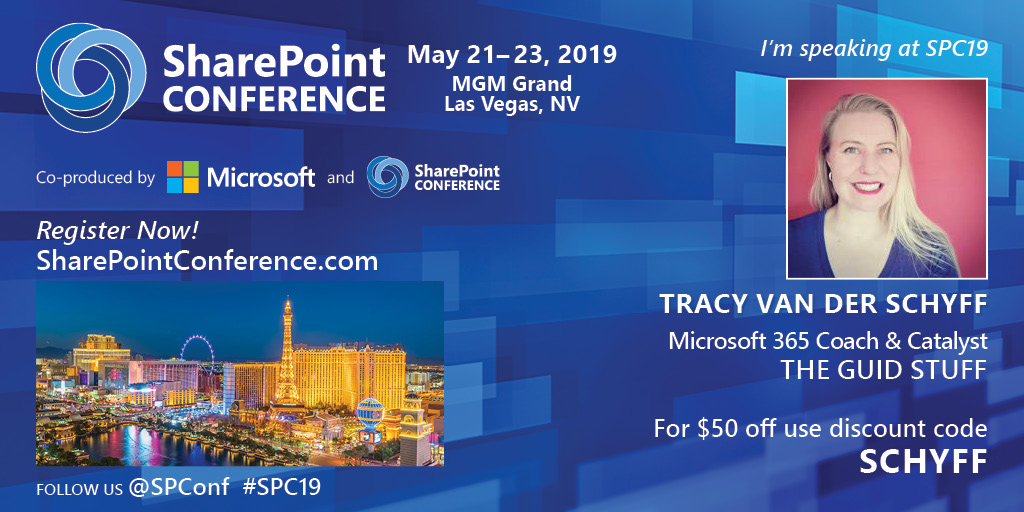 Just to get you excited for the SharePoint Conference, May 21 - 23, 2019 MGM Grand, Las Vegas, here's an overview of my session: Amplify your Digital Creativity with Modern SharePoint Sites: We’ve always wanted to transform SharePoint sites into... Continue Reading →
