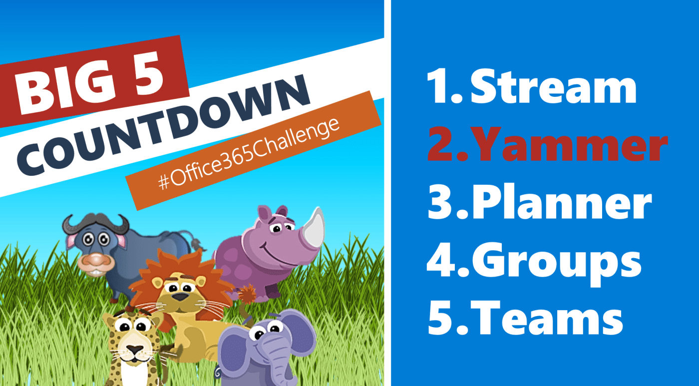 #Office365Challenge - It's the Big 5 Countdown (African Style). My focus for today, and the 3, final days following, will be the communication tools available to us. Today I'll share 13 cool things about Yammer. Day: 362 of 365, 3 left Tools: Office 365 Description:... Continue Reading →