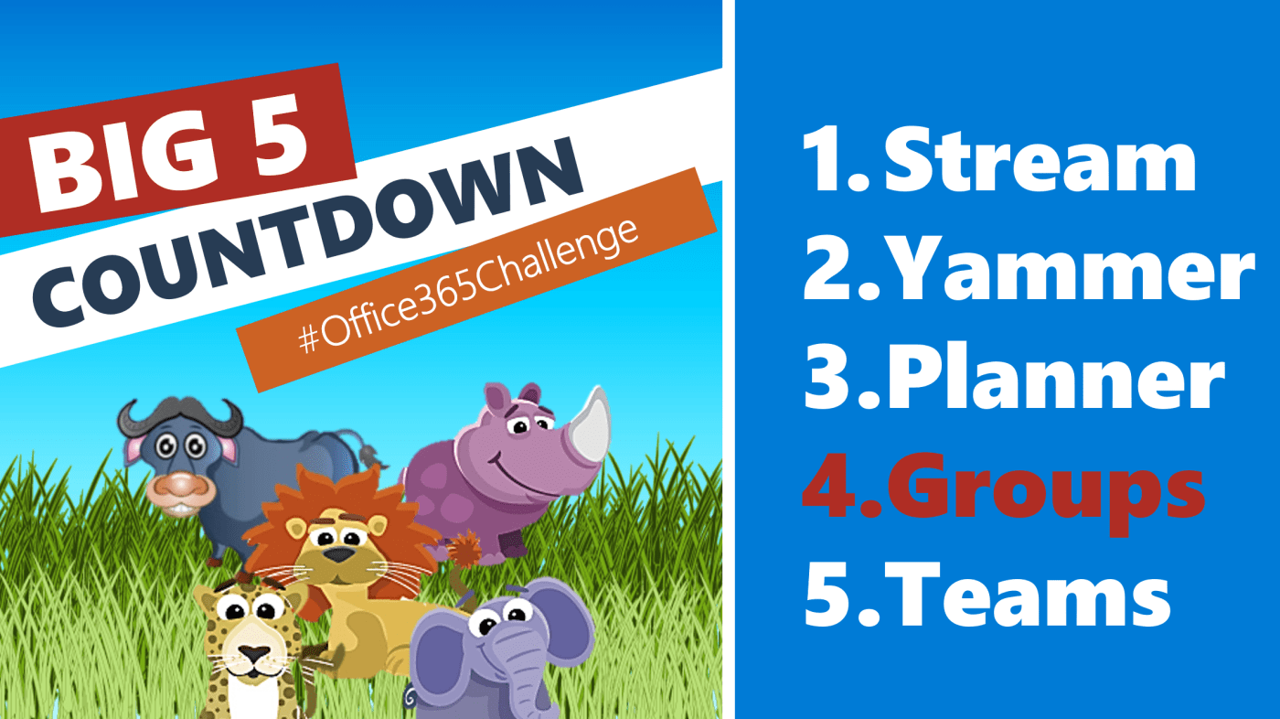#Office365Challenge - It's the Big 5 Countdown (African Style). On my second last day I'll be giving an overview of Office 365 Groups. I will not be answering the "Which one should I rather Use" question - you'll have to wait until tomorrow... Continue Reading →