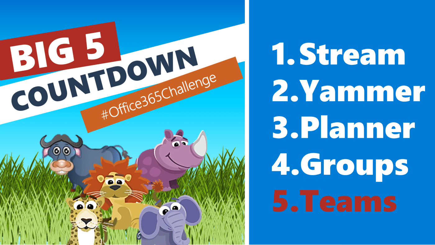 #Office365Challenge - It's the Big 5 Countdown (African Style). It's the big one folks!!! On the last day of my challenge I will give you my overview of Microsoft Teams. And a couple of other opinions which you might, or might... Continue Reading →