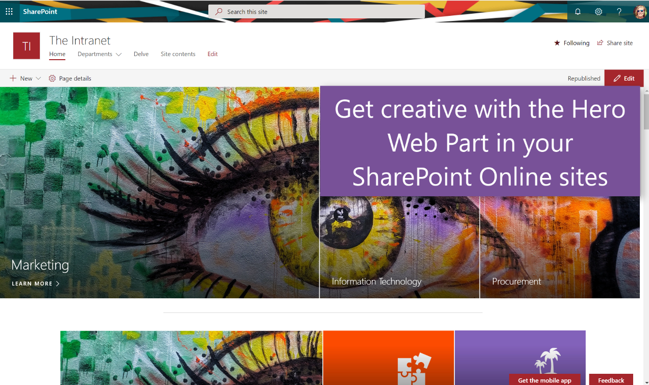 I recently delivered a digital creativity session at #SPC19 in Las Vegas and had such an overwhelming response, that I decided to do some follow up posts on creativity. Today we'll take a look at the Hero Web Part and... Continue Reading →