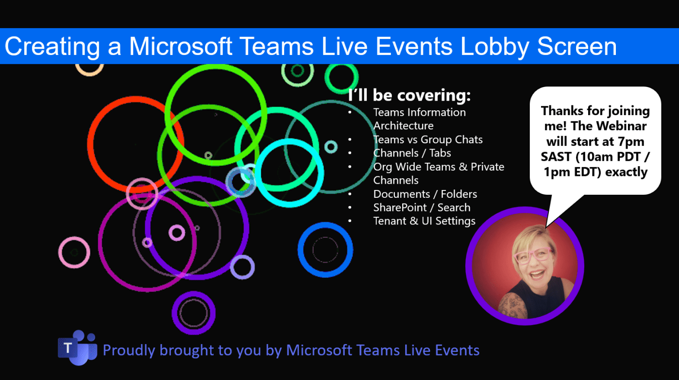 Here's a quick tip on creating a "lobby waiting screen" for your #MicrosoftTeams Live Event (webinar). https://youtu.be/yVEzXqiW7_k Voila! Hope you're enjoying using Teams Live Events as much as I do 🙂 Moving to the Cloud or stuck somewhere without... Continue Reading →